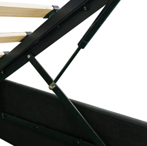 5ft King PU Leather Ottoman Bed with Hydraulic Storage & LED Headboard – Black
