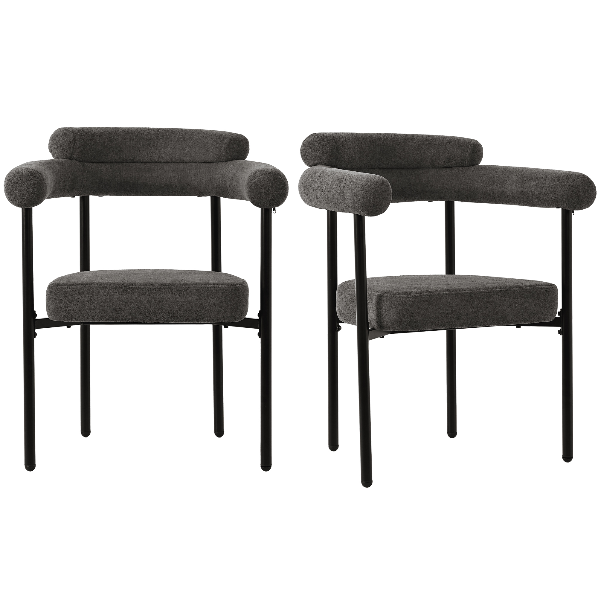 Bring modern comfort to your dining space with this set of two faux suede upholstered armchairs. Designed with a wide, supportive seat and soft fabric finish, these chairs offer a comfortable place to sit for meals, work, or relaxing.