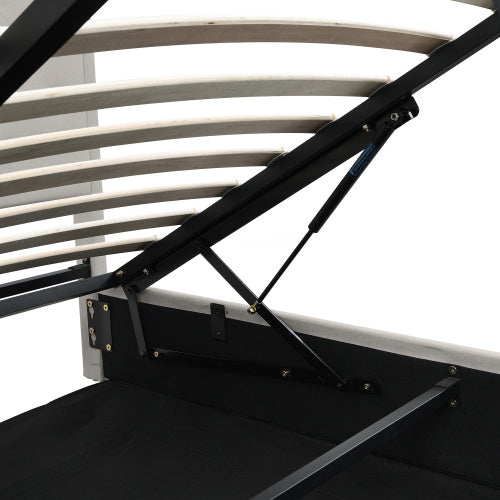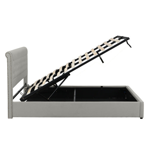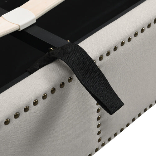 Upholstered Double Bed 4ft6 – Light Grey Linen with Storage & Rivets