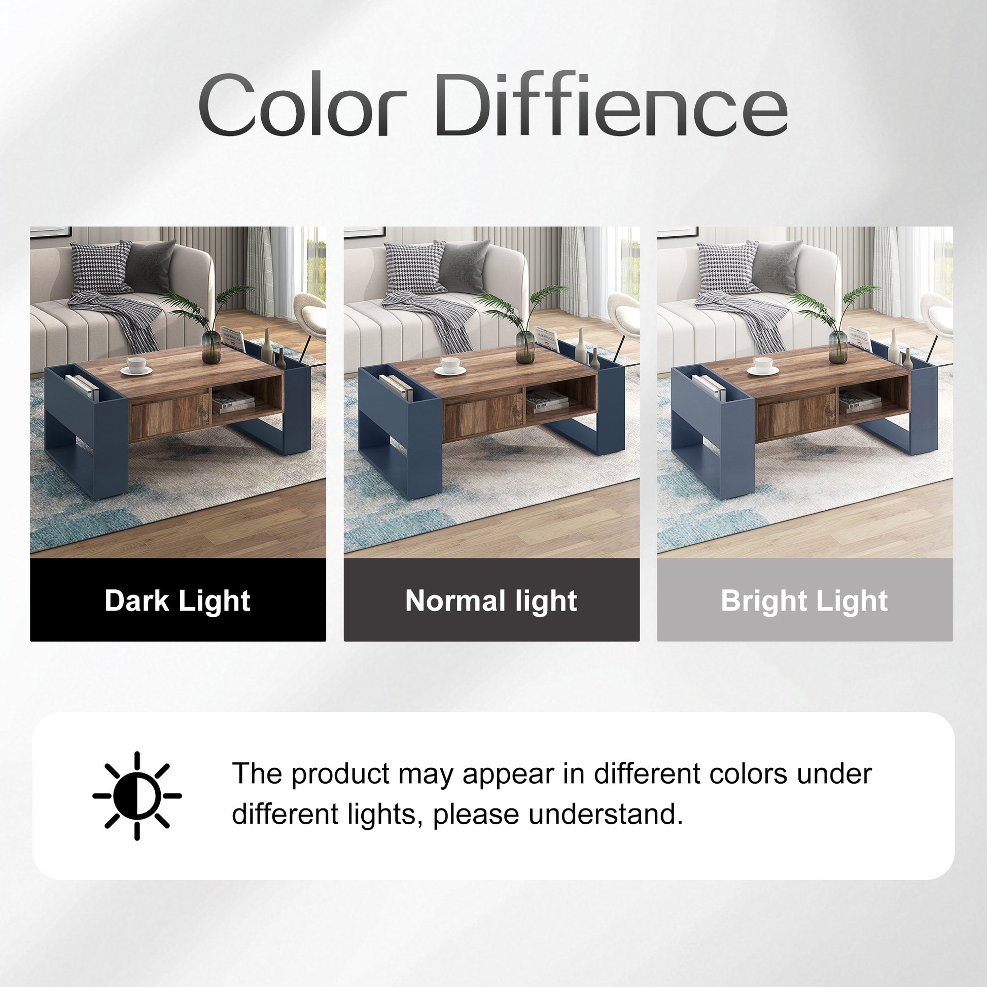 Wood Grain Coffee Table with Handleless Drawer & Double‑Sided Storage – Black/Grey