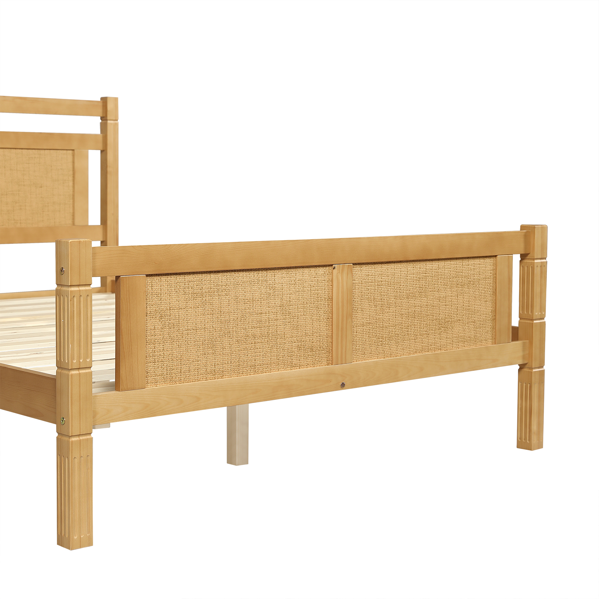 4ft6 Wooden Single Bed with Rattan Headboard